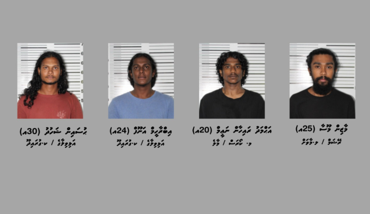 The suspects — Mazin Moosa, 25, of Laamu Maavah; Ahmed Raihaan Naeem, 20, of Male City; Ibrahim Anoof, 24, and Hussain Shahid, 30, both of Kaafu Guraidhoo — stole MVR 130,000 from BML staff who were transporting money to the dollar counter at the new terminal of Velana International Airport (VIA).